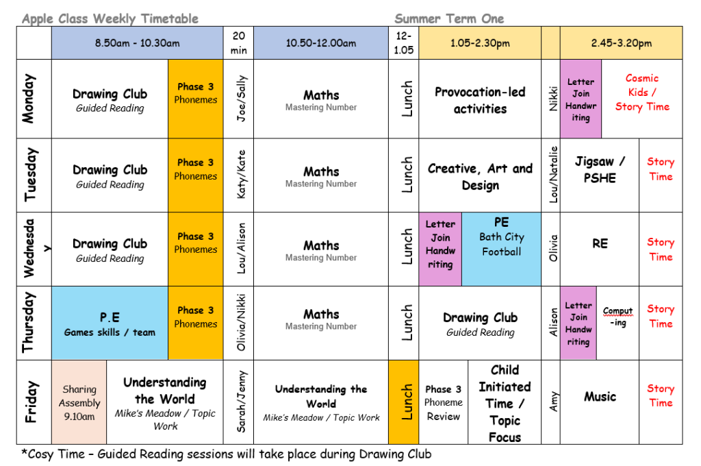 Please see weekly timetable for Apple Class. This is a general overview of the days throughout the week.