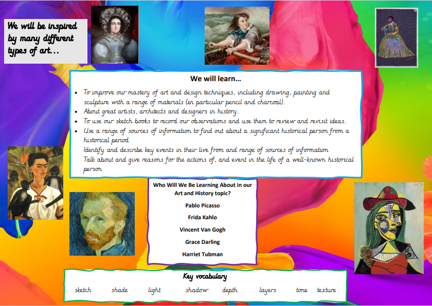 Our exciting history and art topic this term is ‘Perfect Portraits’. Through portraits we will delve into the lives of some incredible historical characters such as Grace Darling. The children will develop their sketching and sculpting skills by exploring different famous artists.